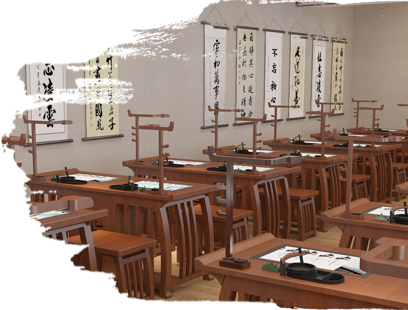 交互式数字临革台双人瀑布屏镶嵌于学生临摹桌内,直接进入学生自主学习软件界面,自动登录无需账号密码,无需教师端和网络可实现8套内置自主学习系统。